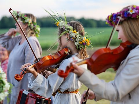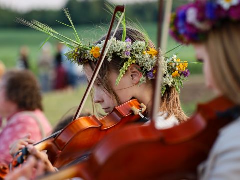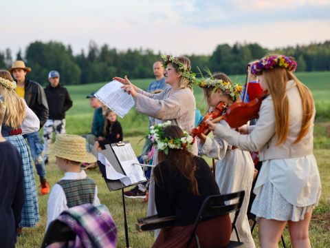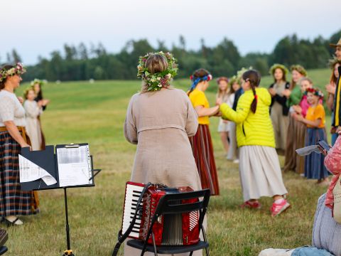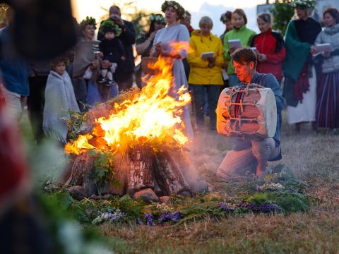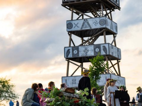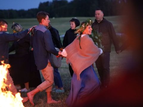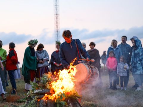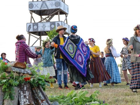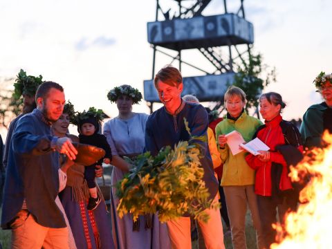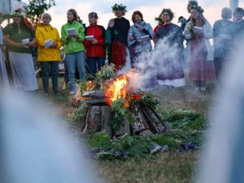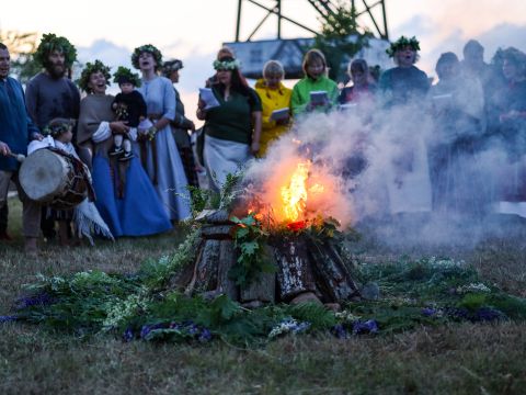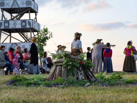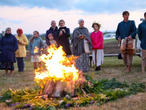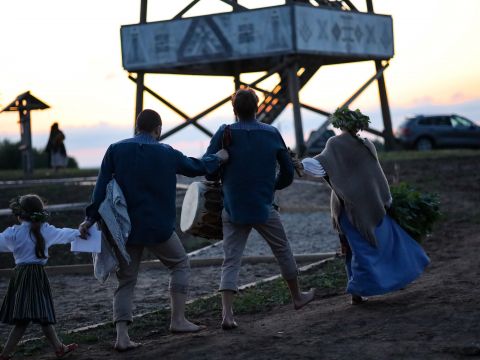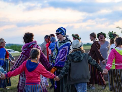 Viņķu kalnā aizvadītas vasaras saulgriežu svinības ar rituālo kopu "Trīs gaisi", folkloras kopu ''Piebaldzēni'' un "Dzīpariņi".